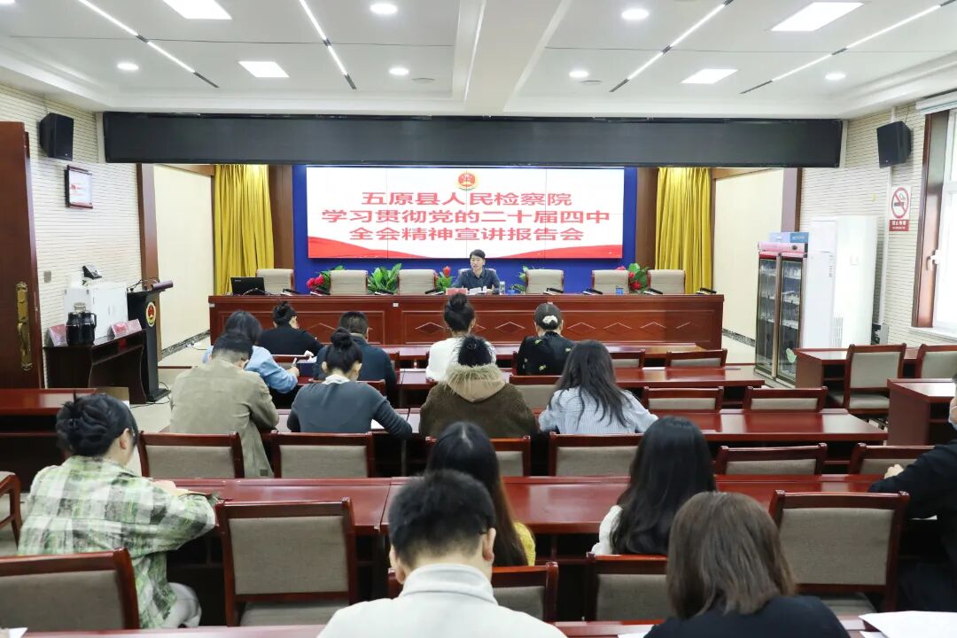 党的二十届四中全会是在“十四五”规划收官之年、“十五五”规划谋划之年召开的一次十分重要的会议,具有里程碑式的重大意义。11月14日上午,五原县人民检察院“周五大讲堂”组织召开党的二十届四中全会精神宣讲报告会,深入学习贯彻党的二十届四中全会精神,切实把思想和行动统一到党中央决策部署上来,推动全会精神在检察工作中落地生根、见行见效。