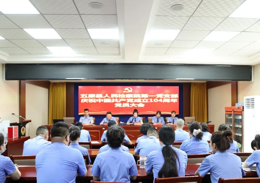 7月1日,五原县人民检察院第一党支部召开庆祝中国共产党成立104周年党员大会,隆重庆祝党的生日。全体党员及预备党员参加会议。