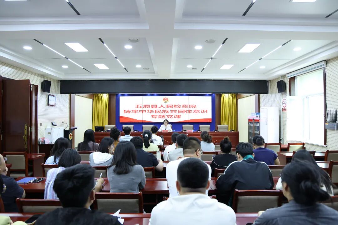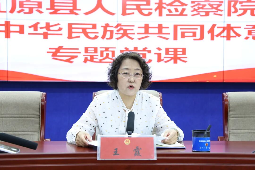 为进一步深入学习贯彻习近平总书记关于加强和改进民族工作的重要思想,引导全体检察人员牢固树立休戚与共、荣辱与共、生死与共、命运与共的共同体理念,9月19日,五原县人民检察院党组书记、检察长王霞围绕“铸牢中华民族共同体意识”主题讲授专题党课,全体检察人员参加学习。